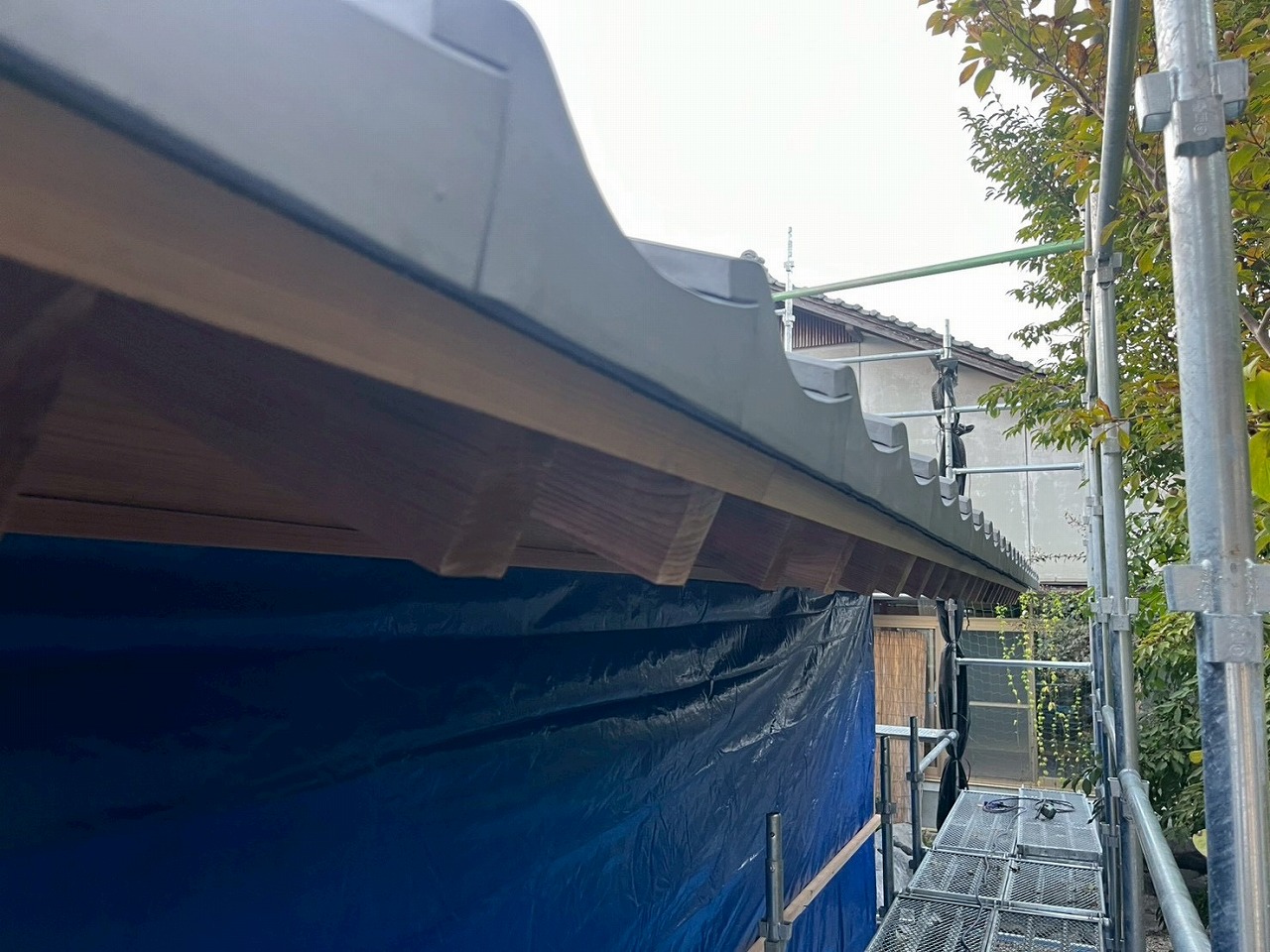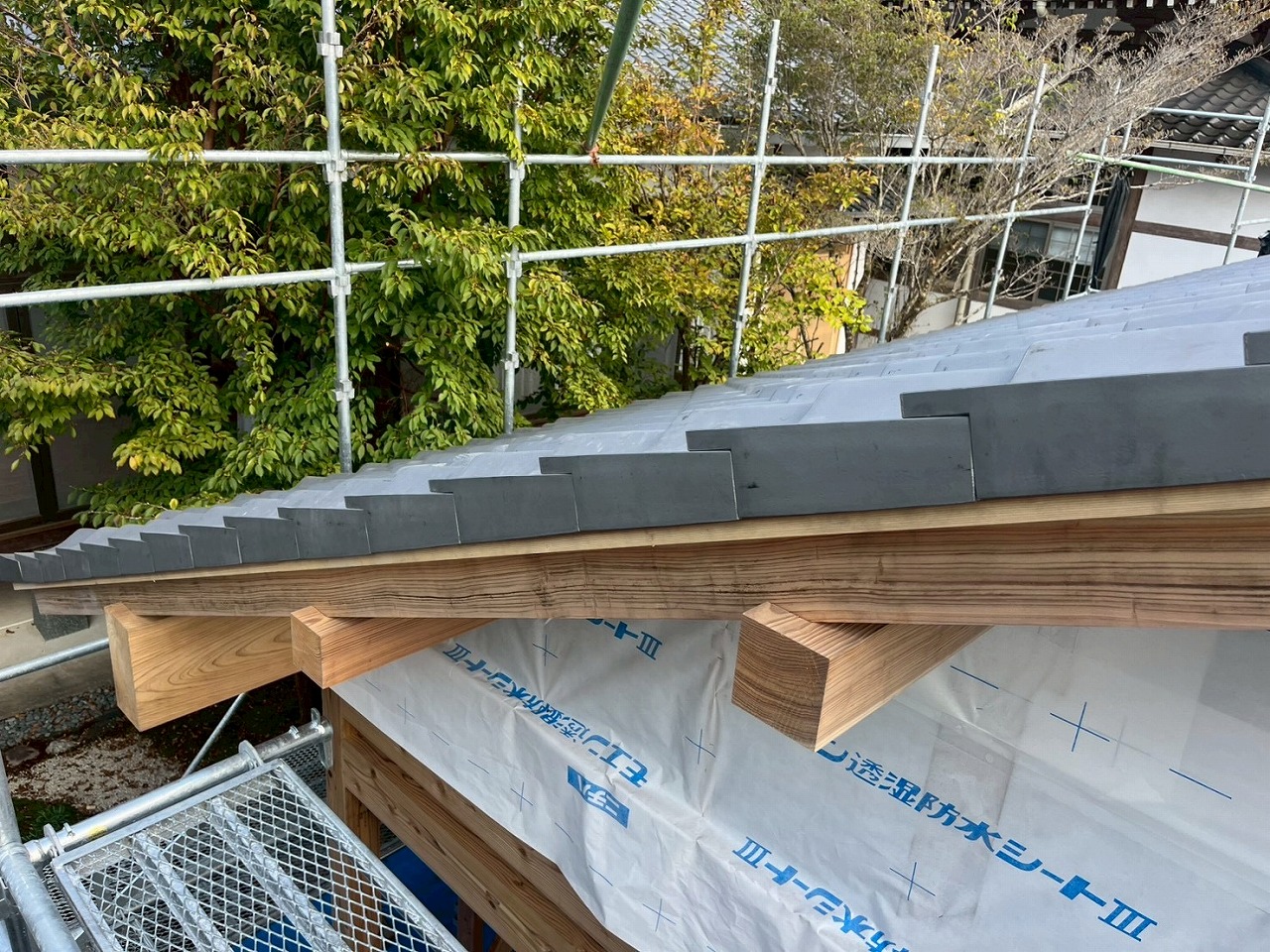 久々に一文字軒瓦・切袖瓦を施工させて頂きました。この瓦は1枚いちまい寸法を取り、合い口を合わせ